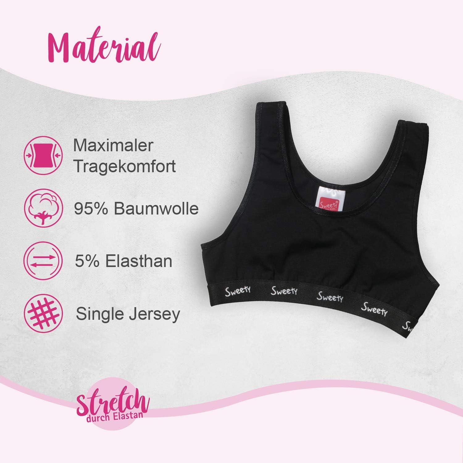 Sweety Sweety 2er Set Madchen Bustier Aus Single Jersey Gr 128 176 I Sport Bh Mit Breiten Tragern I Elastischer Madchen Bh Fur Kinder Mit Einfassband I Kinder Unterwasche I Bh Fur Madchen I