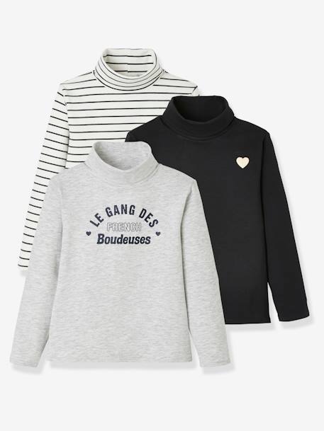 Vertbaudet 3er Pack Madchen Rollkragenshirts In Gestreift Schwarz Hellgrau