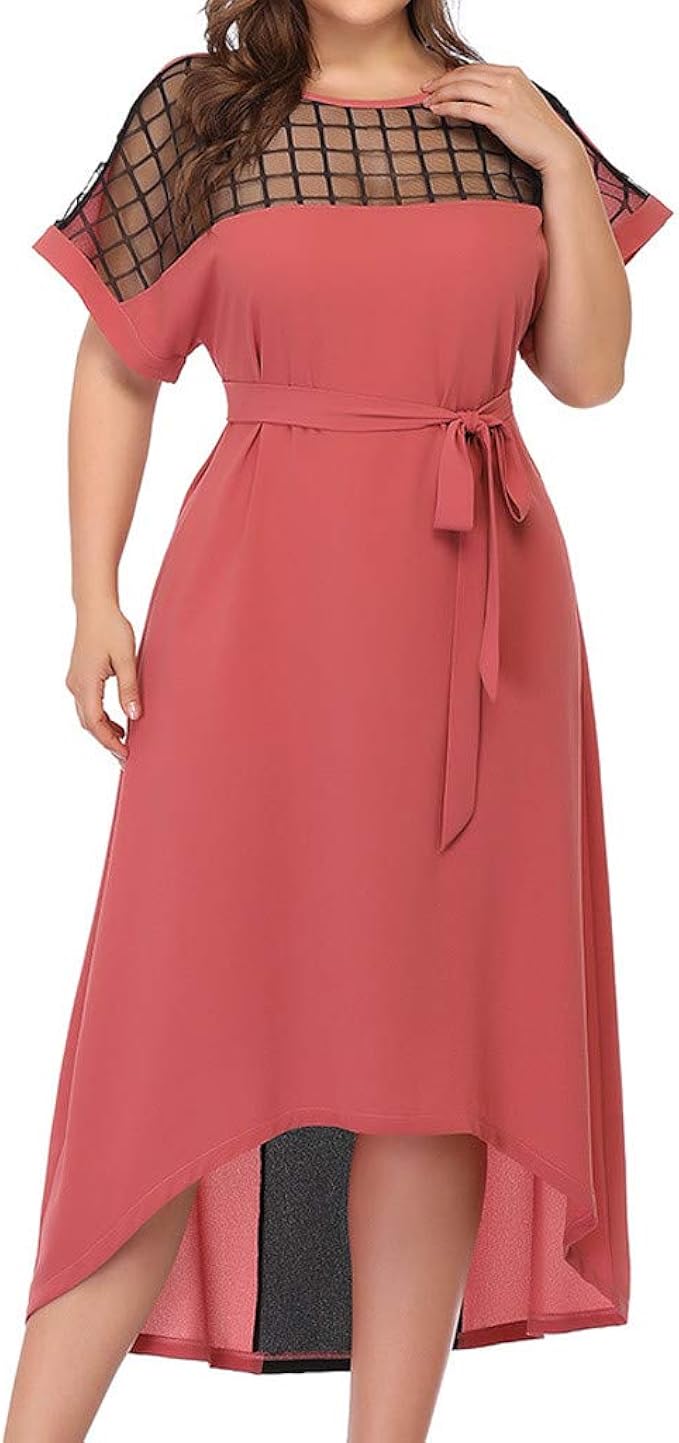 Battnot Damen Kleider Grosse Grossen Elegant 5xl Sommer Strand Urlaub Lange Maxi Kleid Mit Gurtel Frauen Vintage Chiffon Hohlen Hochzeit Festlich Party Rundhals Kurzarm Baggy Sexy Abend Womens Dress Amazon De Bekleidung