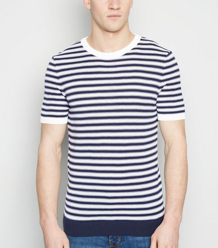 Blaues Streifen T Shirt Mit Strick New Look
