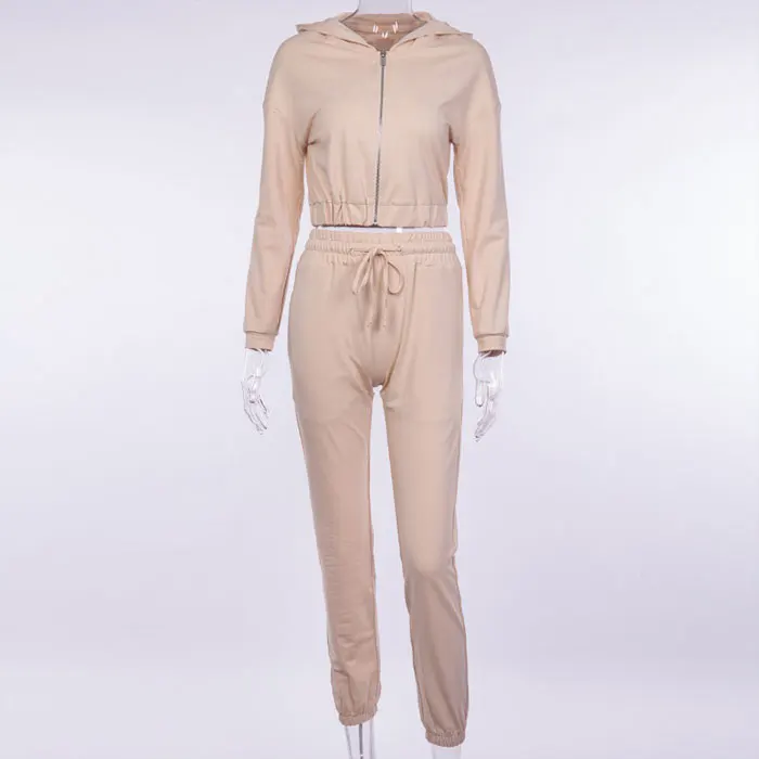 Zip Up Hoodie High Waist Long Leg Zweiteiler Damen Street Clothes Women Tracksuit Crop Hoodies Sets Long Sleeve Two Piece Set Ayintr