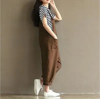 Women Loose Jumpsuit Playsuit Strap Dungaree Harem Trousers Black Blue Coffee Stylish Ladies Linen Overalls Clothes Plus Size Linen Overalls Loose Jumpsuitjumpsuit Plus Aliexpress