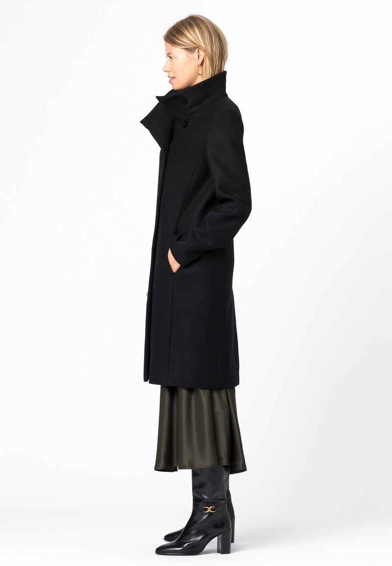Asymmetrischer Wollmantel Mit Stehkragen In Schwarz Hallhuber