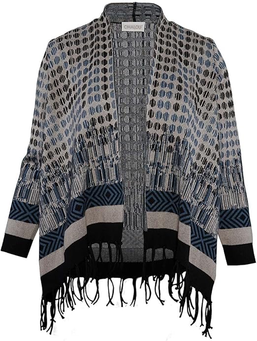 Chalou Damen Strickjacke Cardigan Langarm Baumwolle Grau Blau Grosse Grossen Punkte Muster Fransen Dicke Elegant Festlich Amazon De Bekleidung