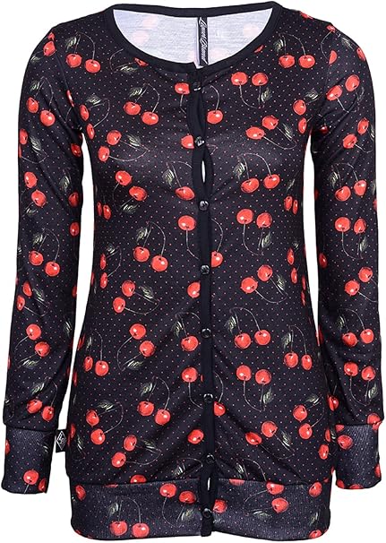 Liquor Brand Damen Jacke Kirschen Punkte Strickjacke Schwarz Xs Amazon De Bekleidung