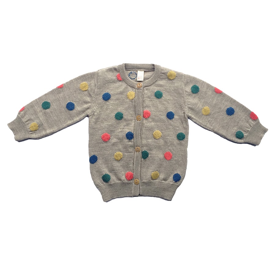 Frugi Strickjacke Polka Dots In Grau Bunt Aus Bio Baumwolle
