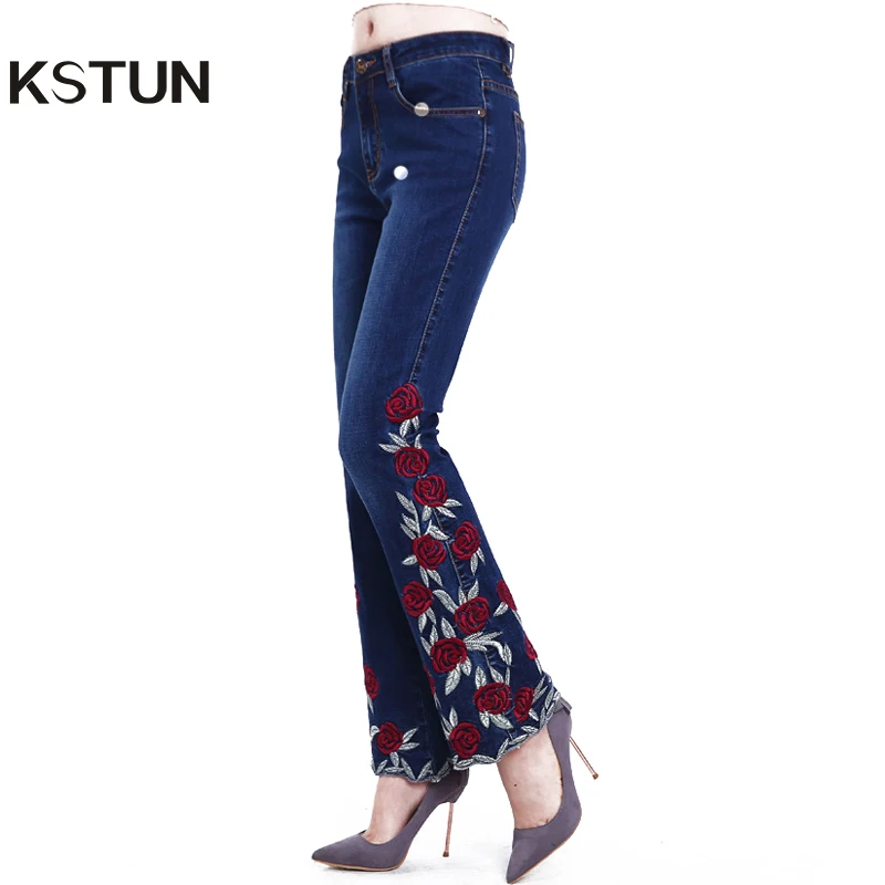 Frau Jeans Bell Bottom Jeans Bestickt Hohe Stretch Womens Ausgestelltes Hosen Denim Damen Blumen Stickerei Jeans Mujer Femme 36 Jeans Mujer Jean Bellbell Bottom Jeans Aliexpress