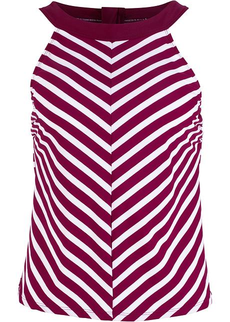Schones Tankinioberteil Mit Einem Reissverschluss Im Rucken Weinrot Creme Gestreift