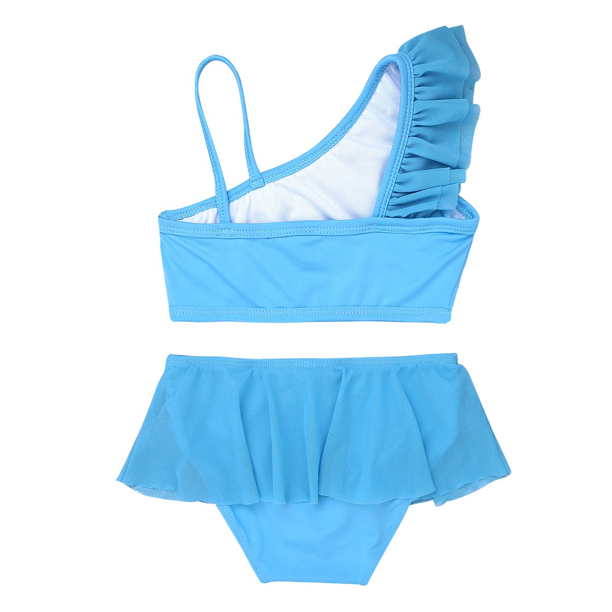 Tiaobug Madchen Kinder Badeanzug Zweiteiler Bikini Tankini Set Einschulter Top Oberteile Mit Trager Ruschen Badehose Baderock Badebekleidung Bademode Strandkleidung Bikinis Bekleidung