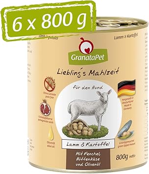 Granatapet Liebling S Mahlzeit Lamm Kartoffel Nassfutter Fur Hunde Hundefutter Ohne Getreide Ohne Zuckerzusatze Alleinfuttermittel 6 X 800 G Amazon De Haustier