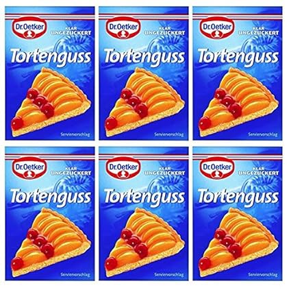 This item Dr Oetker Tortenguss Klar (Clear Cake Glaze ) 3 pack by Dr Oetker CDN$1359 (CDN$3775 / 100 g) In Stock Ships from and sold by mygermanstoreus. Dr Oetker Tortenguss rot Be the first to review this product £150 In stock SKU CB008 Cake glaze, red, 3 sachets Get ready for the strawberry season!. Preparation is simple and easy Just boil with sugar and your choice of fruit juice or water, let cool, and spoon over your desired dessert!.