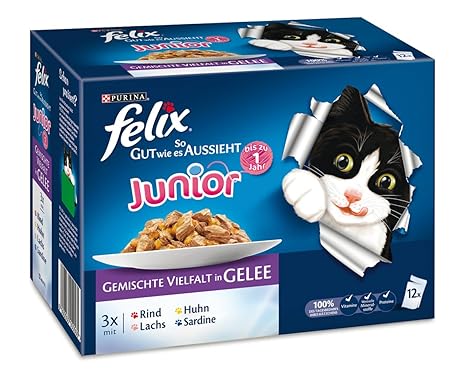 Felix So Gut Wie Es Aussieht Junior 12er Multpacks Rind Huhn Lachs Sardine 12x100g Katzenfutter Von Purina 3er Pack 3 X 1 2 Kg Amazon De Lebensmittel Getranke