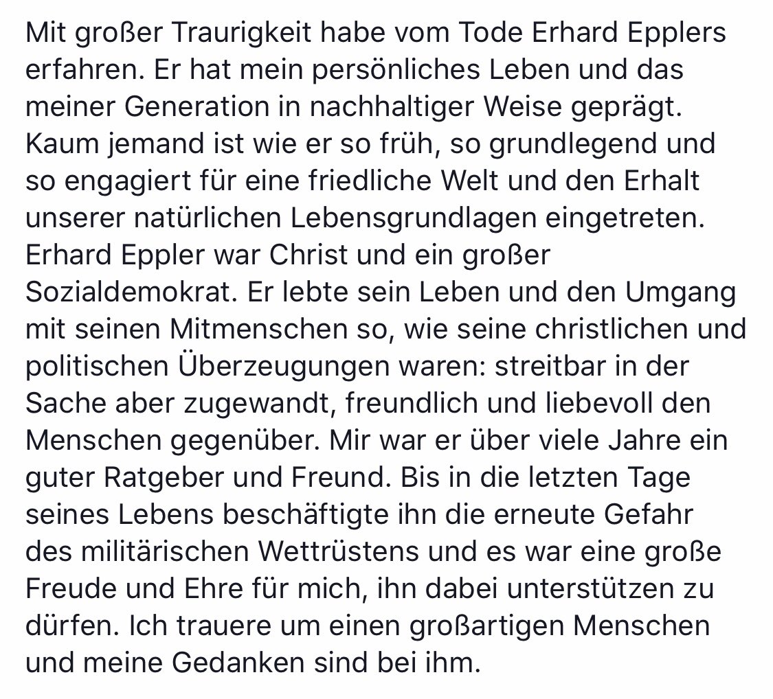 Sigmar Gabriel Ich Trauere Um Meinen Freund Erhard Eppler