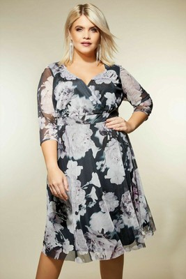 Kleid Gr 50 52 Grau Festlich Knielang Cocktailkleid Wickelkleid Abendkleid Blume Ebay