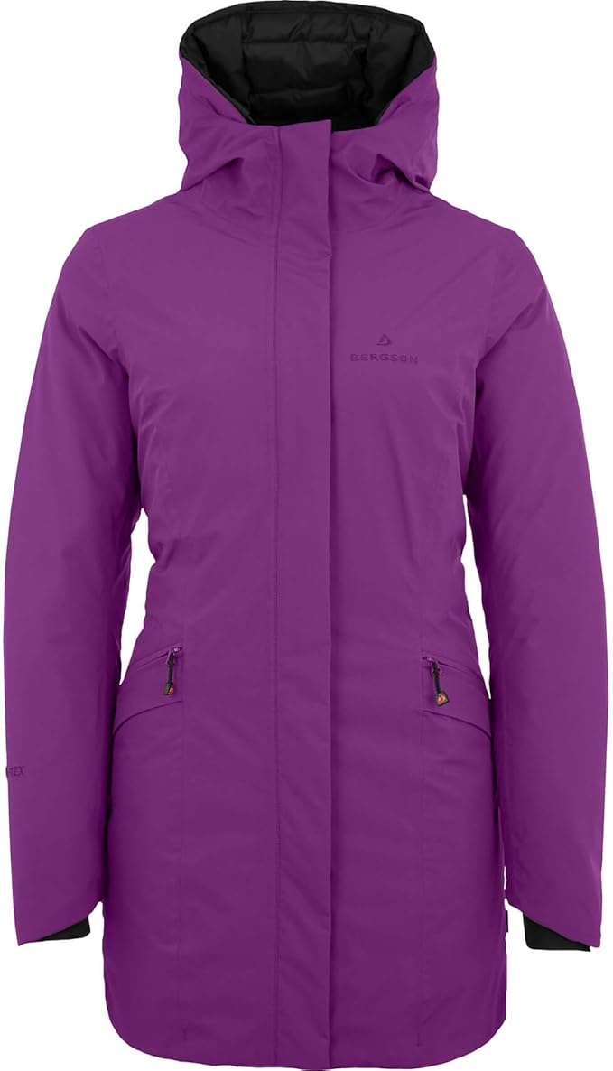 Bergson Damen Outdoor Wintermantel Mina Regenmantel Wasserdicht Winddicht Atmungsaktiv Warm Wassersaule 100 Mm Atmungsaktivitat 100 G Qm 24std Amazon De Bekleidung