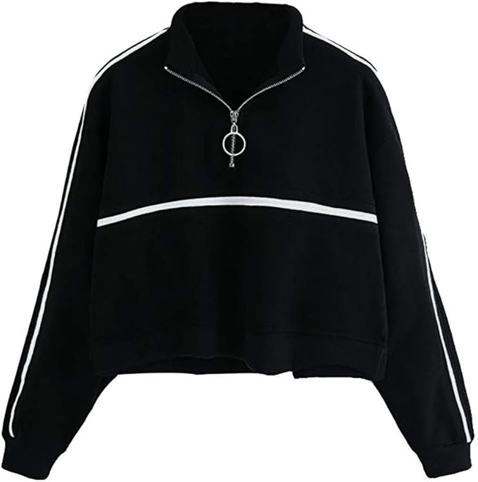 Amazon Com Wuai Women Color Block Fashion Stripe Zip Sweatshirt Jumper Pullover Shirt Tops Clothing
