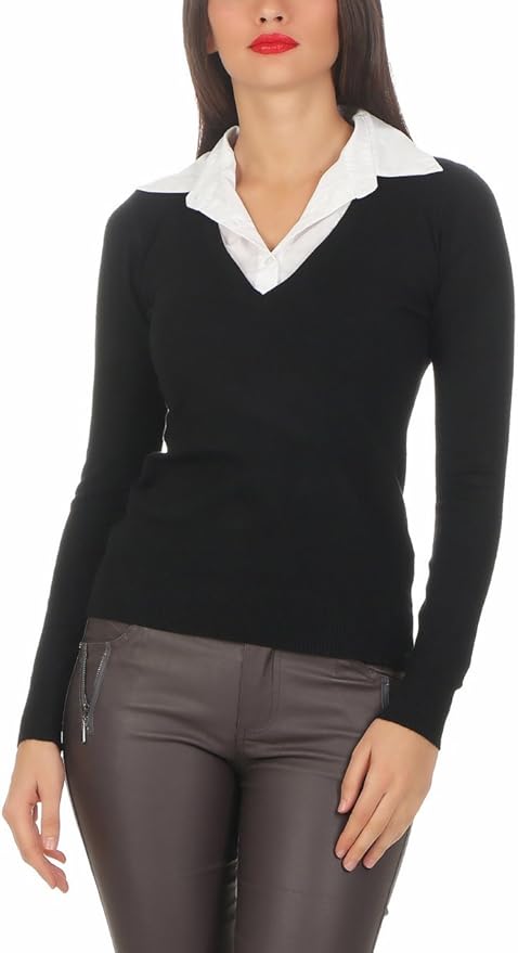 Fashion4young 51 Damen Feinstrick Pullover M Blusenkragen Business Langarm Damenpullover Schwarz S M 34 36 Amazon De Bekleidung