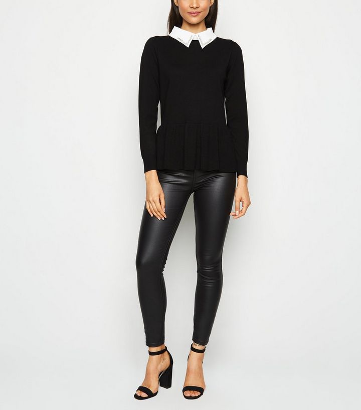 Cameo Rose Schwarzer Pullover Mit Ruschen Und Strass Kragen New Look