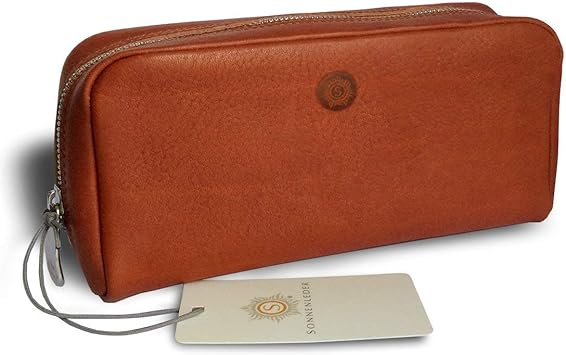 Sonnenleder Hochwertige Kosmetiktasche Faschina Mit Logo Farbe Natur Echtes Leder Amazon De Burobedarf Schreibwaren