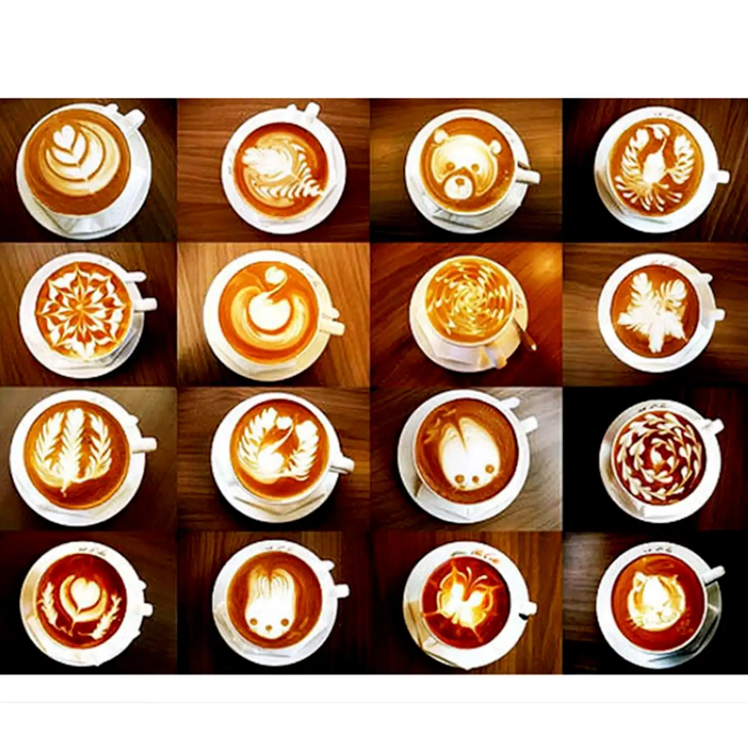 16pcs Kaffee Kunst Schablonen Fantastische Kaffee Schaum Drucken Schablonen Fur Das Dekorieren Des Hafermehl Kuchen Kuchen Cappuccino Latte Heisse Schokolade Durch Zavf Amazon De Kuche Haushalt
