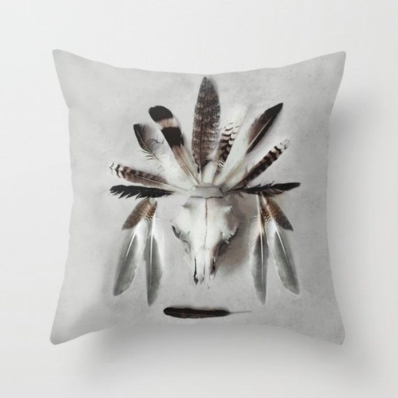 Boho Kissen Schadel Und Federn Weiche 18 X 18 Boho Etsy