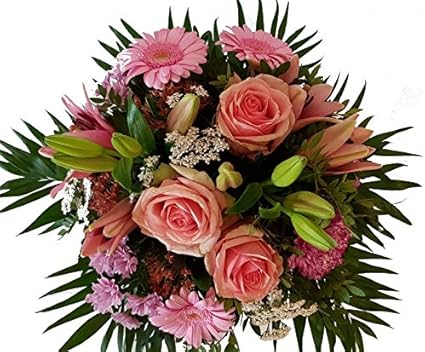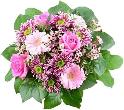 Dominik Blumen Und Pflanzen Blumenstrauss Charlotte Mit Rosa Lilien Chrysantheme Gerbera Und Schleierkraut Amazon De Garten
