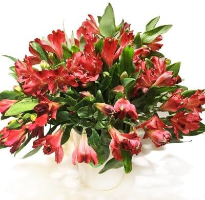 Blumenstrauss Rote Verzweigte Alstromerien Inklusive Keramikvase Amazon De Garten