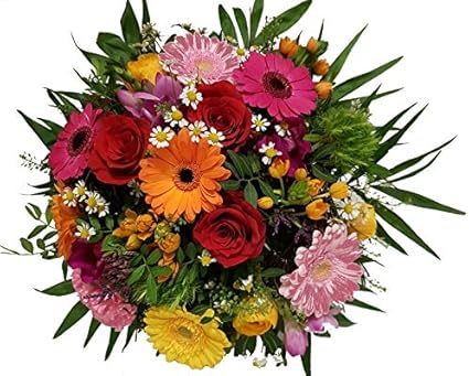 Flora Trans Bunter Blumengruss Mit Rosen Zum Geburtstag Versenden Blumenbote Amazon De Garten