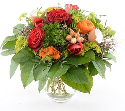 Frisches Blumengesteck Versenden Blumen Im Straussenei Frische Blumen Zum Geburtstag Mit Gratis Grusskarte Amazon De Garten