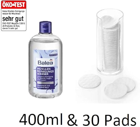 Set Balea Mizellen Reinigungswasser Mit Hamameliswasser Fur Mischhaut Und Sensible Haut Und 30 Wattepads Aus 100 Baumwolle Weich Und Fusselfrrei Amazon De Drogerie Korperpflege