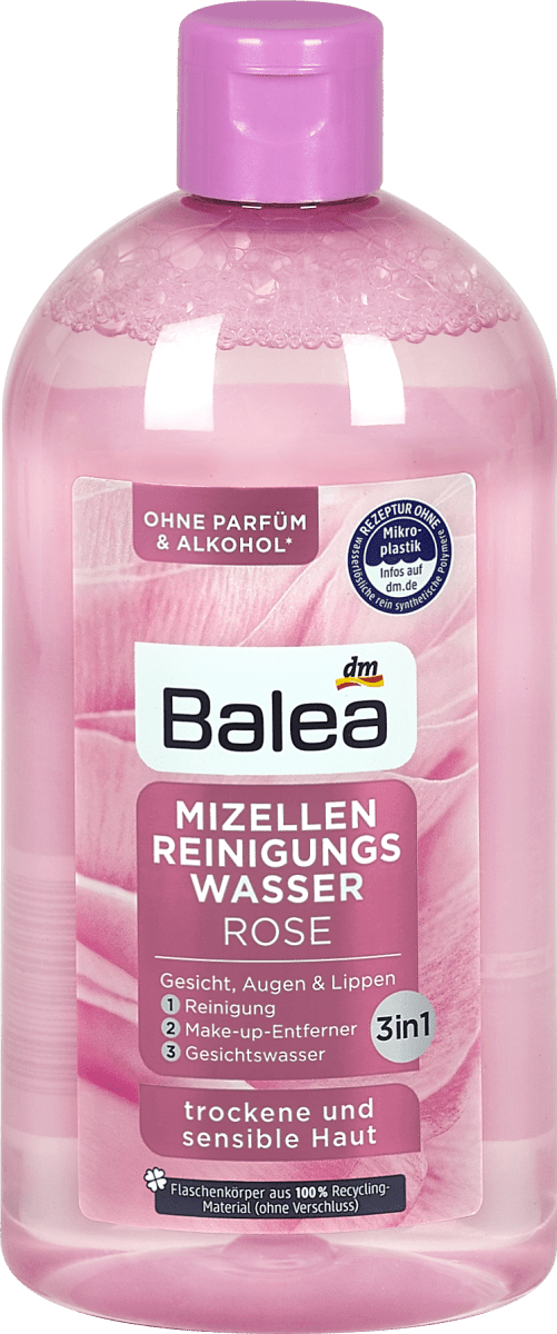 Das Balea MizellenReinigungswasser Rose besteht zu mehr als 90 % aus Inhaltstoffen natürlichen Ursprungs** und vereint drei Produkte in nur einem Schritt Reinigung, Makeup Entferner und Gesichtswasser Die Pflegeformel mit Mizellen entfernt schonend Makeup und überschüssigen Talg Es klärt,. „Das Balea MizellenReinigungswasser für Mischhaut und sensible Haut vereint drei Produkte in nur einem Schritt Reinigung, MakeUpEntferner und Gesichtswasser!. Nachdem ich ja nun vom Mizellen Gesichtswasser sehr enttäuscht war, hat sich hier sehr positiv das Blatt gewendet < Garnier Mizellen Reinigungstücher *Werbung Heute habe ich bei dm diese neue Marke in Zusammenarbeit mit Balea und Mr & Mrs Panda ( Pandaliebede ) entdeckt Balea Japanese Blossom Lipcare Set Neu erster Eindruck.