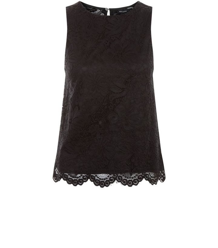 Schwarzes Armelloses Top Mit Spitze New Look