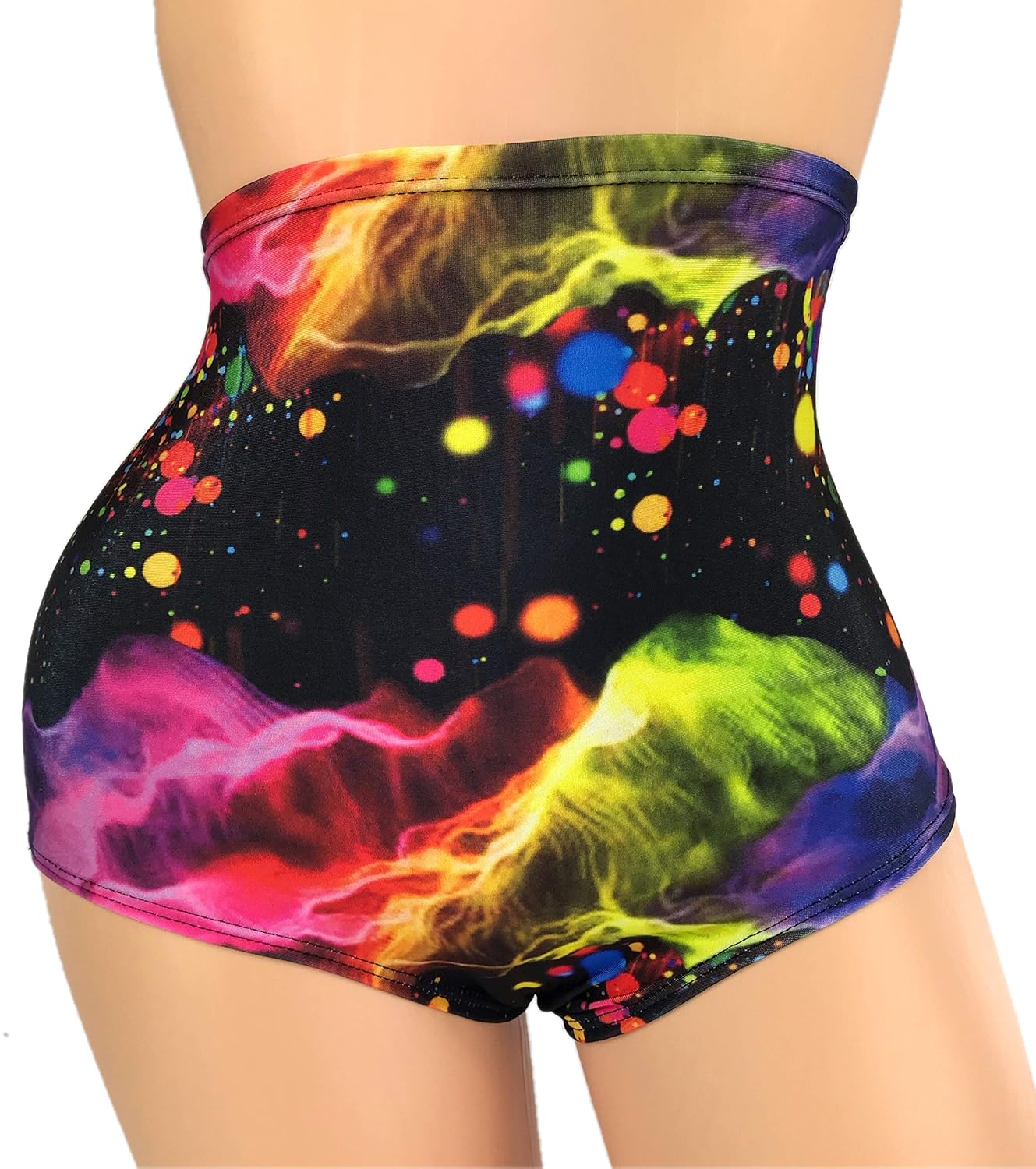 Amazon Com Cosmic High Waisted Bikini Bottom Neon Cheeky Waist Booty Shorts Retro Bikini Uv Reactive Rave Outfits Swimwear Bathing Suit High Thong Hip Handmade