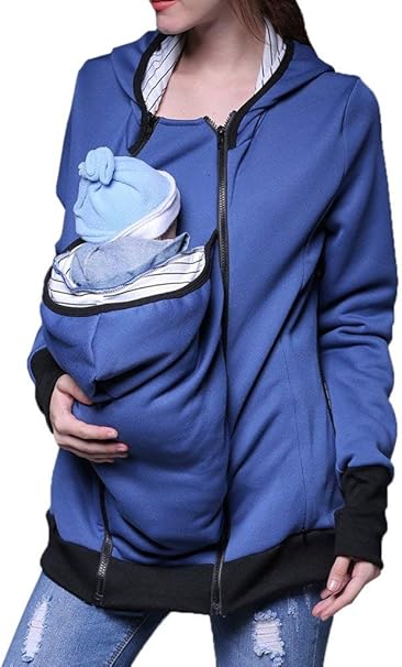 Damen Tragejacke Kangurujacke Kapuzenpullover Fleece 3in1 Multifunktional Umstandsjacke Warm Dick Einfarbig Kanguru Kapuze Herbst Winter Sweatshirt Fur Mama Und Baby Blau Xl Amazon De Bekleidung