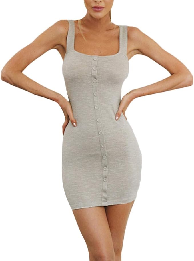 Pinklu Kleider Fur Damen Eng Anliegend V Ausschnitt Solide Sexy Knopfe Sleeveless Party Club Sling Short Mini Dress Graues Kleid Amazon De Bekleidung