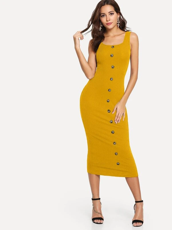 Spaghetti Strap Ribbed Buttoned Bodycon Trikot 600 X 900 Casual Fashion Fluorukiminas Die Befurworter Dieser Frau Kleidung Figurbetontes Kleid Outfit Ideen