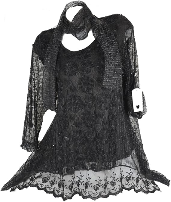 2tlg Kombination Lagenlook Spitze Tunika Bluse In Netz Optik 3d Blumen Twinset Schal 40 42 44 46 Schwarz Grau M L Patchwork Pailetten Festlich 46 Amazon De Bekleidung