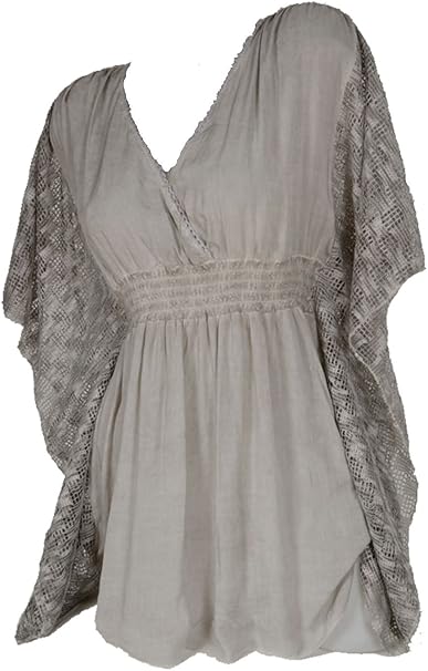 Wasserfall Spitze Sommer Lagenlook Bluse Shirt Tunika Kleid Pullover 36 38 40 42 S M L Nert Optik Grau 40 Amazon De Bekleidung