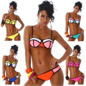 Yourdesignerz Damen Neopren Bikini Bunt Mit Bugel Bademode Sommer Oberteil Und Hoschen Rosa Orange Gelb Amazon De Bekleidung