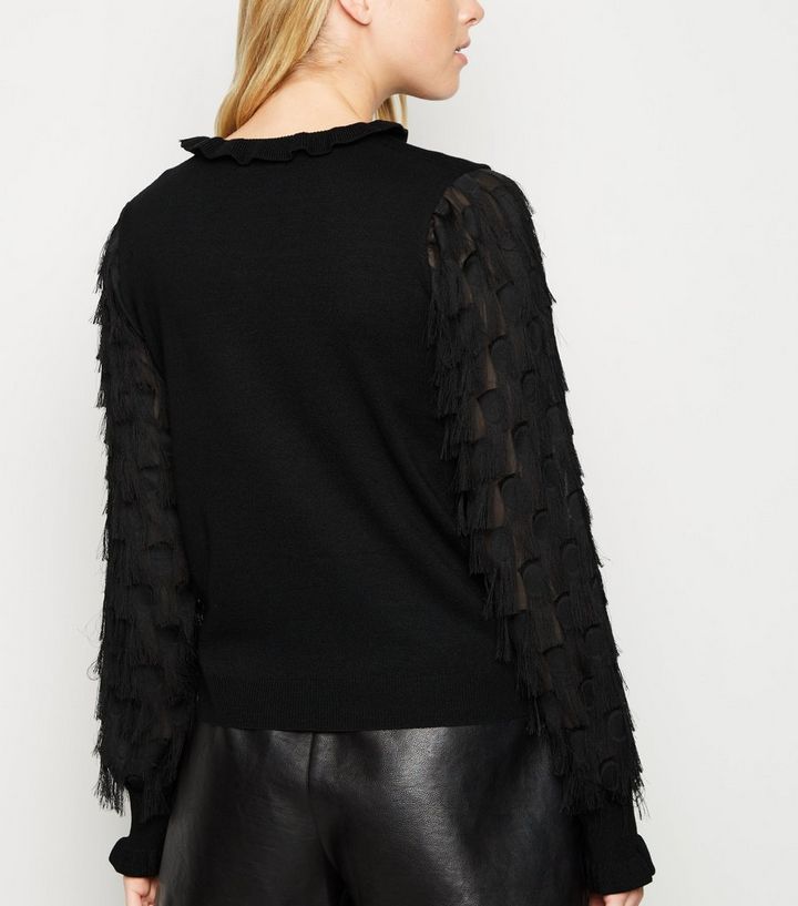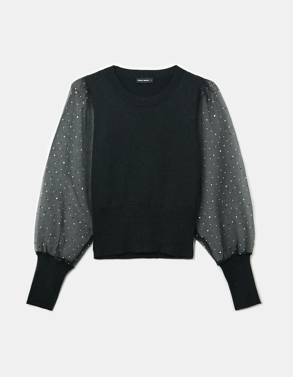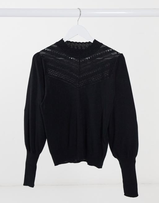 Forever New Schwarzer Pullover Mit Spitzenpasse Und Ballonarmeln Evesham Nj