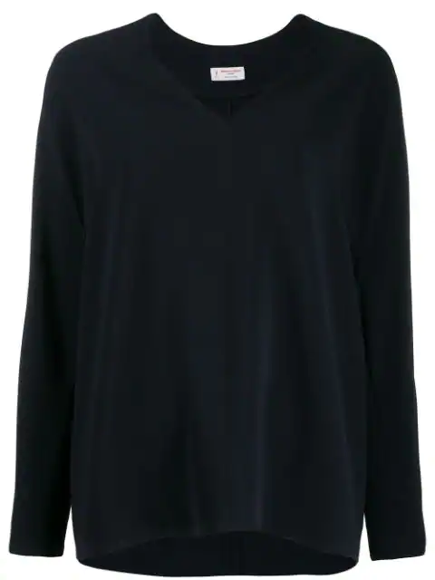 Alberto Biani Bluse Mit V Ausschnitt In Blue Modesens