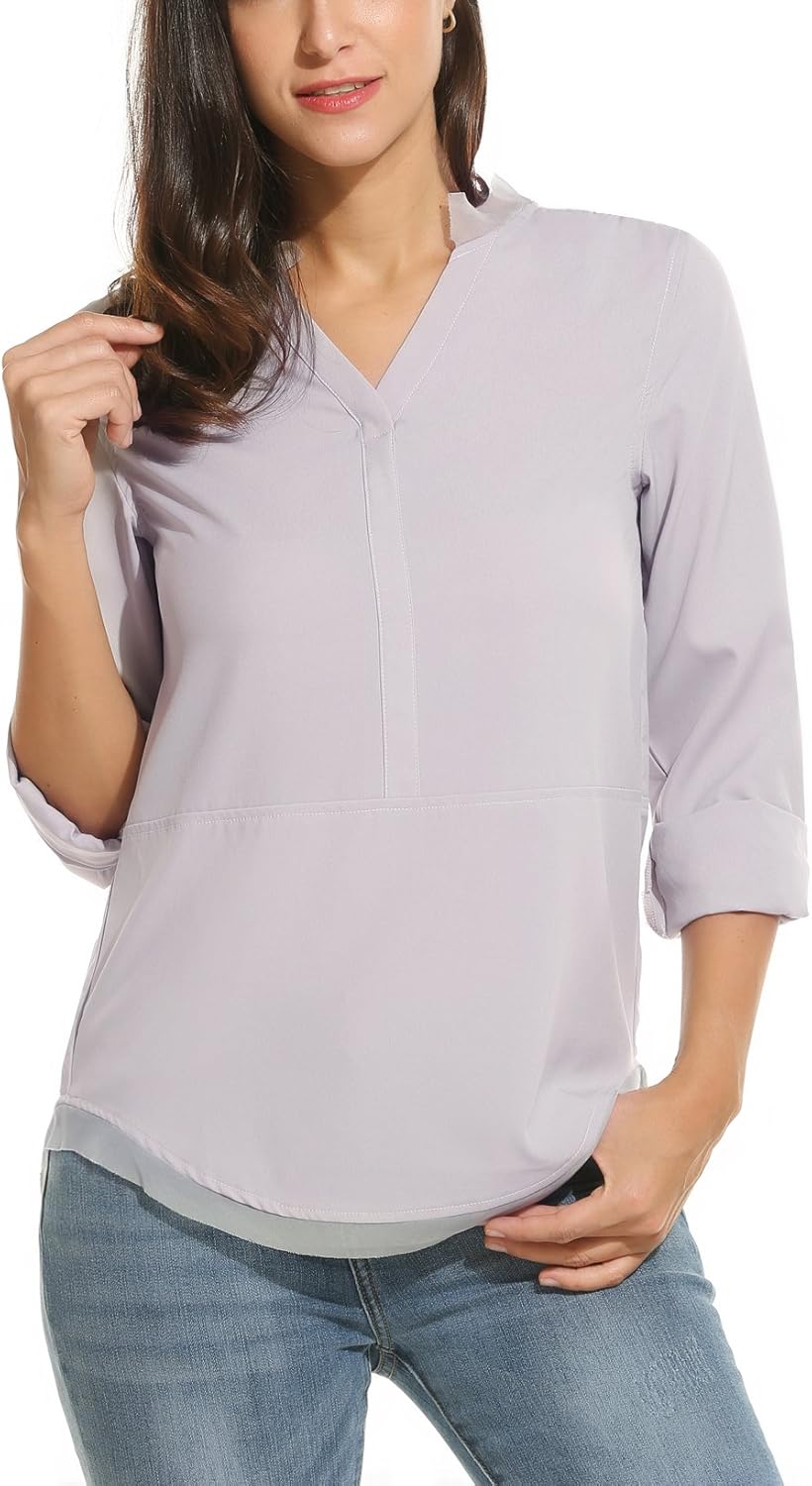 Damen Bricnat Damen Elegant Bluse V Ausschnitt Langarm Hemd Langarmshirt Freizeit Tunika Shirt Tops Leicht Casual Oberteile Business Herbst Bekleidung Guiarh Pt