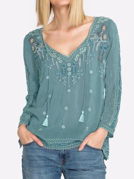 Lassige Bestickte Bluse V Ausschnitt Tops Modetalente Langarm 1 1 2 3 4 5 6 Damen Freizeistops V Ausschnitt Urlaub Rayon Urlaub Freizeistops Modetalente