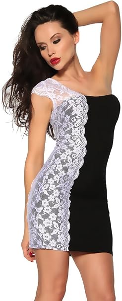 Mini Kleid Mit Spitze Kleid Schwarz Weiss Grosse Atixo S Amazon De Bekleidung