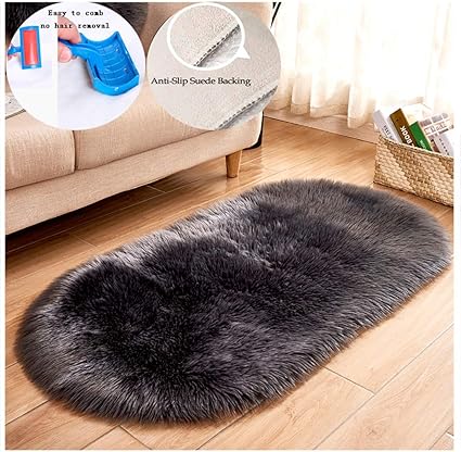 Bedee Faux Lammfell Teppich Shaggy Kunstfell Schaffell 160x90cm Lammfellimitat Teppiche Longhair Fell Universal Fur Wohnzimmer Schlafzimmer Kinderzimmer Esszimmer Auto Bettvorleger Sofa Matte Grau Amazon De Kuche Haushalt