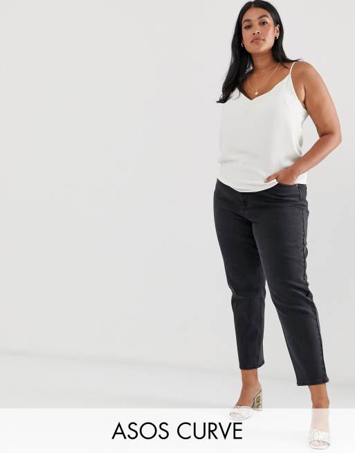 Evesham Nj Design Curve Farleigh Schmale Mom Jeans Mit Hohem Bund In Verwaschenem Schwarz Evesham Nj