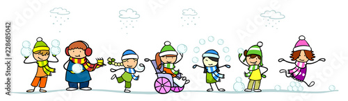 Eps Illustration Kinder Schnee Spielen Vektorclipart Gg Gograph
