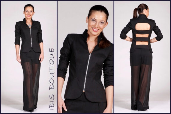 Moderne Elegante Schwarze Frau Blazer Grosse Grossen Plus Etsy