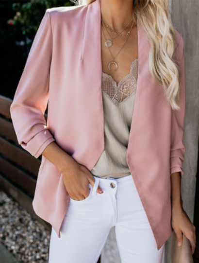Dabag Damen Herbst Business Blazer Grosse Grossen Eleganter Frauen Jacke Plain Langarm Outwear Eleganter S Rosa Amazon De Bekleidung