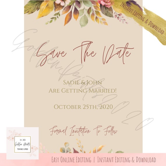 Autumn Love Save The Date Printable Design Instant Download Etsy